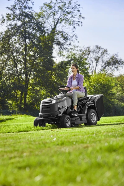 De AT4 84 HA is een compacte tuintraktor en kenmerkt zich door zijn uitstekende veelzijdigheid en superieur rijcomfort. De tuintraktor wordt aangedreven door een Stiga 414 cc ST 400 1 cylinder viertaktmotor met een vermogen van 6,3 kW bij 2400 toeren per minuut. Het maaisysteem is uitgerust met een dubbele messenmaaier met een maaibreedte van 84 cm, die centraal kan worden versteld in 7 posities, van 25 tot 80 mm. Dit zal helpen de juiste houding te vinden voor elke situatie. De AT4 84 HA heeft een voetpedaalgestuurde hydrostatische aandrijving, een wenselijk kenmerk waarmee u de rijsnelheid kunt regelen zoals u dat zou doen met een auto met automatische transmissie, hoe meer druk op het pedaal, hoe sneller u gaat.