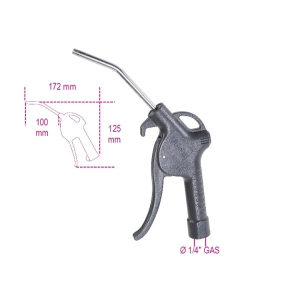 Een blaaspistool is handig gereedschap dat voor tal van klussen gebruikt kan worden. Zo komt een blaaspistool uitstekend van pas bij het schoonblazen van de werkplek, voor het snel en gemakkelijk oppompen van fiets- en autobanden, of voor het schoonmaken van lastig te bereiken plekken, zoals in een motor of in machines. Een blaaspistool kan zowel gebruikt worden in de professionele werkplek als in de thuis garage of doe-het-zelf hobbyruimte. Dit Beta blaaspistool is vervaardigd uit duurzaam, schokbestendig, krasvast, thermisch isolerend composiet kunststof materiaal. En de speciale klep en hendel maken het mogelijk de luchtopening progressief te sturen voor een optimale luchtstroom.