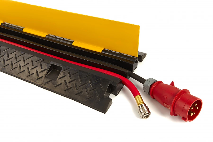 Wanneer je werkt met elektrische apparatuur en/of slangen, ontkom je er niet aan dat de kabels en leidingen over de weg of het terrein komen liggen. Om ervoor te zorgen dat je hier niet over valt, en de kabels niet opvallen of beschadigen, kun je gebruik maken van deze handige kabelbrug. Deze 100 cm kabelbrug met twee kanalen biedt plaats voor maar liefst twee leidingen, snoeren of andere soorten kabels en kan eenvoudig worden afgesloten door de scharnierende klep.