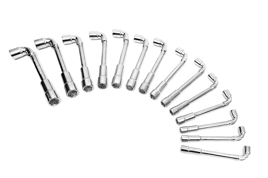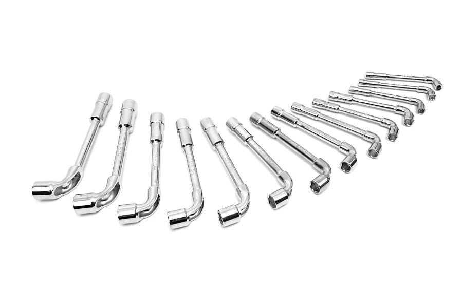 De set bestaat uit haakse pijpsleutels met de maten; 6, 7, 8, 9, 10, 11, 12, 13, 14, 15, 16, 17, 18, 19 mm.
