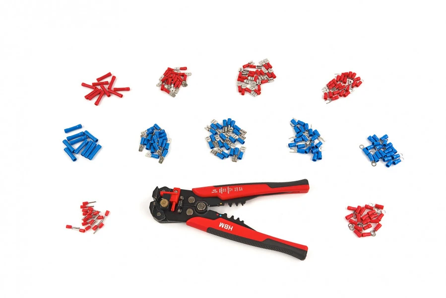Over de HBM 199 Delige Profi 4 in 1 Automatische Draadstriptang met Knip en Krimpfunctie Inclusief 199 Kabelschoentjes