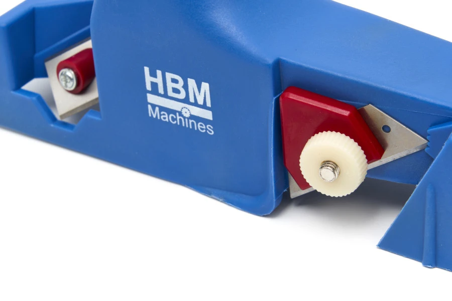 Deze handige HBM 235 mm. Kantschaaf voor Gipsplaten van kunststof heeft een verstelbaar voormes van 9,5mm-15mm voor het op maat snijden van gipsplaten. Het 2e achterste vaste mes en is voor het afschuinen onder een hoek van 45º van gipsplaatranden ten behoeve van hoekverbindingen en voegen.