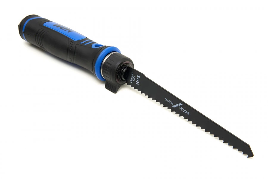 Over de HBM 7 delige houtzaag, metaalzaag, scrobzaag met snelwisselhouder