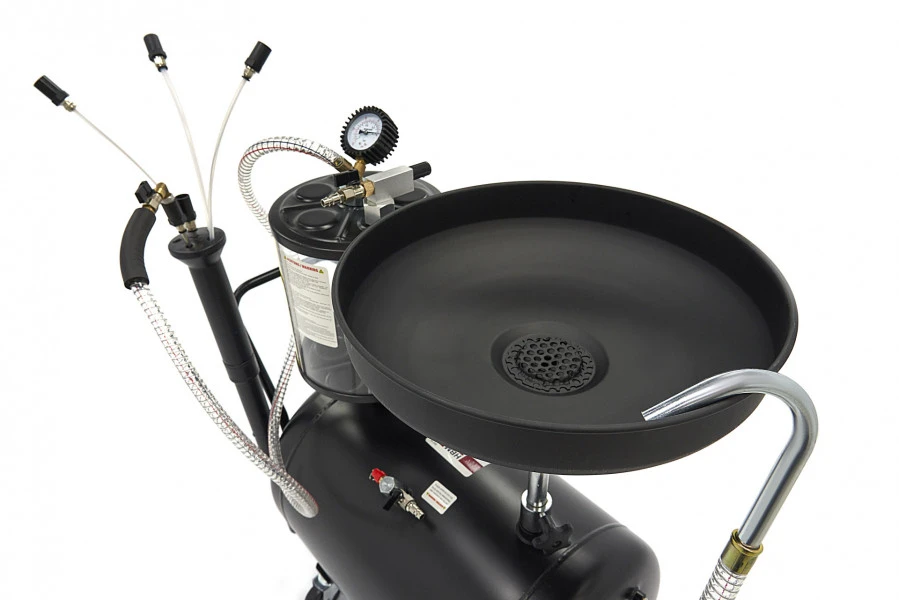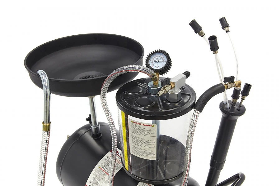 Dit zeer complete olieopvangsysteem met een tankinhoud van 70 liter heeft alles om moeiteloos olie te verwijderen uit motorblokken. Deze olieafzuiger wordt compleet geleverd inclusief een flink aantal accessoires.