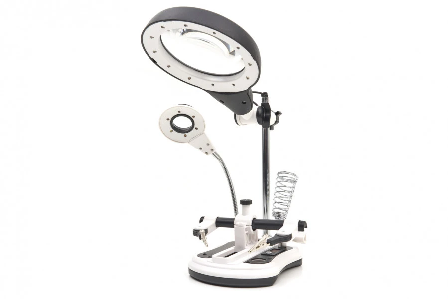 Een goed verlichte werkplaats is goud waard, zeker als je voor je werk heel kleine werkstukken of oppervlakken moet behandelen of solderen. Deze loupelamp is een handig hulpmiddel daarbij.