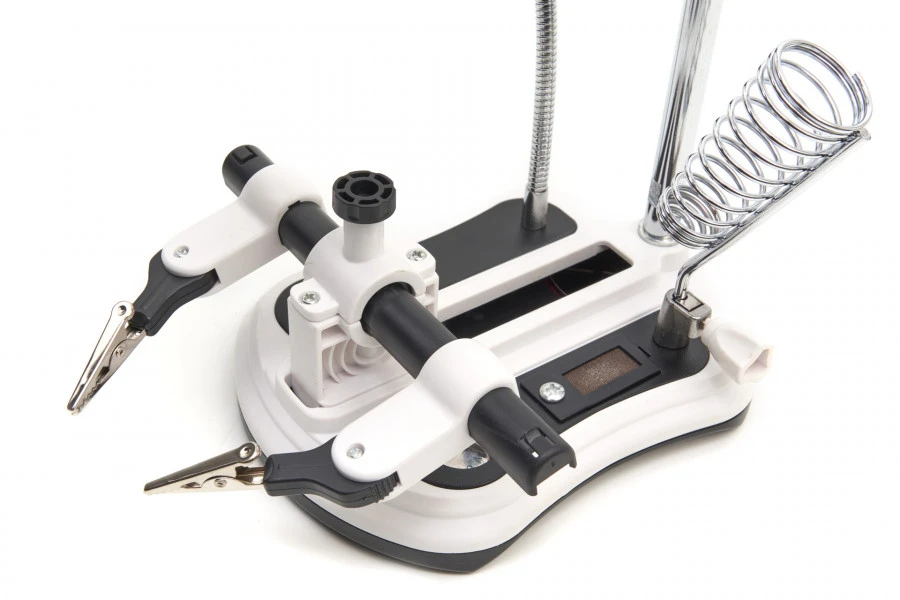 De twee armen en afstelbare hulpklemmen geven je alle nodige flexibiliteit bij het gebruik van deze lamp. Daarbij is de soldeerbouthouder spiraalvormig, voor meer grip en controle. Bij de lamp krijg je 4 AA penlight batterijen, zodat je meteen aan de slag kunt.