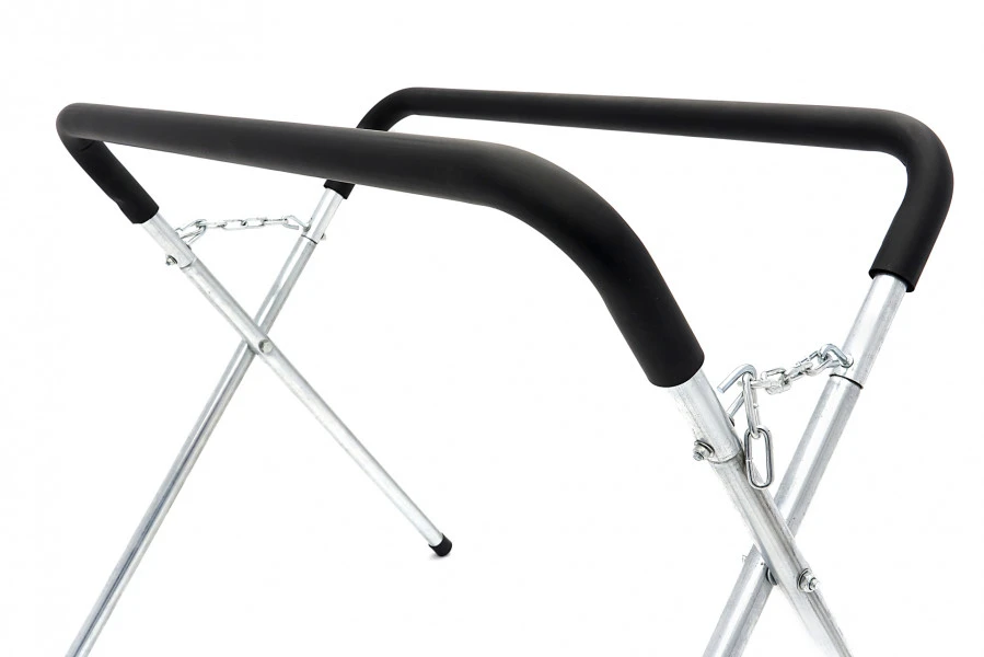 Aan de onderzijde van de poten van de standaard zitten kunststof voeten. Door zijn dwarse constructie kan het frame een relatief hoge belasting aan, ondanks zijn eigen lage gewicht. Perfect voor het zorgvuldig en snel behandelen, spuiten, onderhouden en herstellen van autodeuren, andere onderdelen van het chassis en meer. Daarbij is dit model standaard geschikt voor zowel kleine als grote werkplaatsen door zijn compacte design en gebruiksvriendelijke bouw.