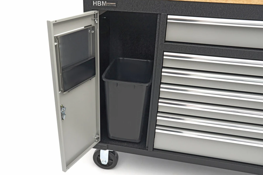 Om intensief te klussen is een goede werkbank onontbeerlijk. En een goede plek om al je gereedschap te bewaren is ook altijd nodig. Met de HBM 168 Cm. Professionele Verrijdbare Gereedschapswagen, Werkbank Met Massief Houten Werkblad haal je beide in huis. De gereedschapswagen heeft voldoende opbergvakken voor klein en groot gereedschap en een handige prullenbak. En bovenop een stevig houten werkblad om al je klussen op te kunnen doen. Daarnaast is deze verrijdbaar waardoor je gemakkelijk op meerdere plekken kunt werken en de wagen zo weer aan de kant schuift als je ruimte nodig hebt.