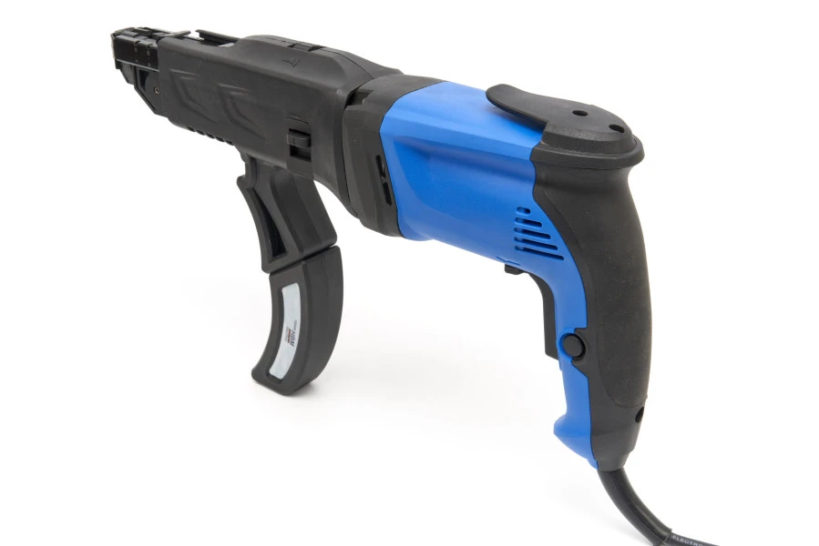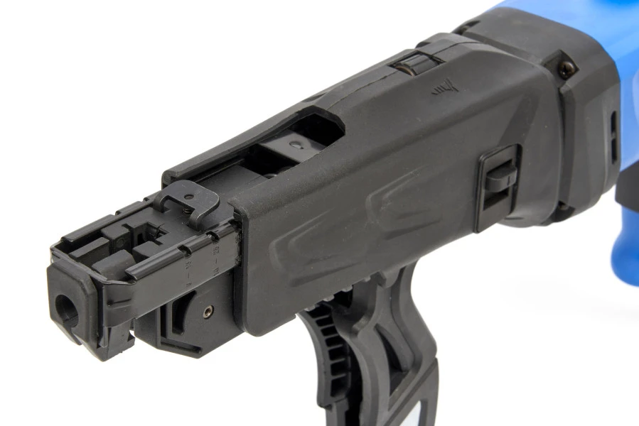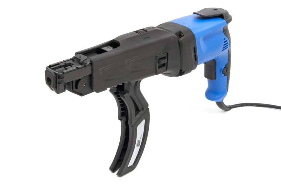Deze automaat is bedoeld voor gipsplaatschroeven die met een band aan elkaar bevestigd zijn met een lengte van 9 tot 55 cm. Deze band met schroeven worden automatisch door de machine voortgetrokken en de schroeven worden één voor één in lijn gelegd met de kruiskop bit in de machine. Het enige wat jij nog hoeft te doen is duwen en de trekker overhalen! Er worden 3 verschillende kruiskop (Phillips) maten bits meegeleverd met deze schroefmachine.