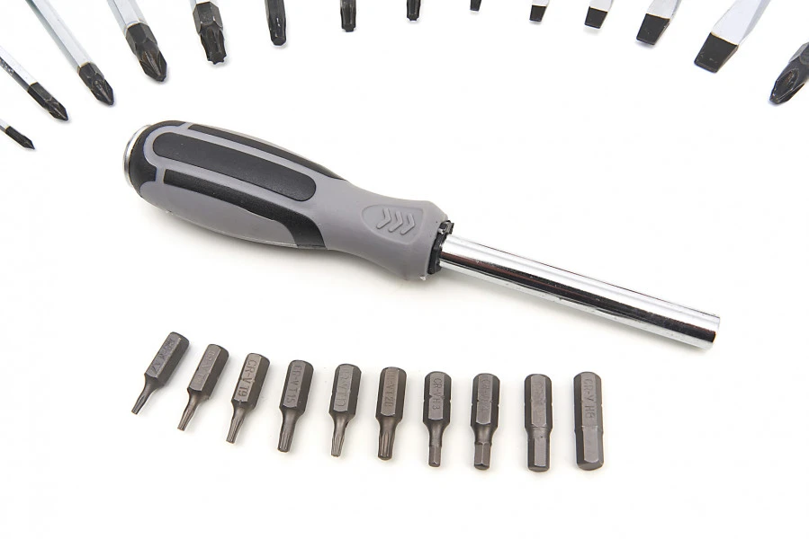 Met deze set schroevendraaiers, bitjes en inbussleutels kan je echt elke schroef en bout los- of vastdraaien. De dikke handgrepen van zacht kunststof zorgen dat je veel kracht kunt zetten en zijn bijna niet kwijt te raken. De set is gemaakt van oersterk chroomvanadiumstaal dat bijna niet slijt, waardoor de tools ook na jarenlang gebruik hun uitstekende grip op je ijzerwaren blijven houden.