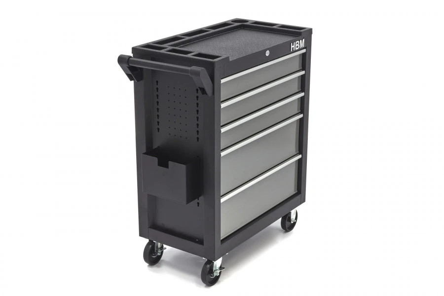 Deze gereedschapswagen biedt voldoende ruimte voor het veilig opbergen van allerlei soorten gereedschap. Het is de ideale oplossing voor kleinere werkplaatsen en garages. Je duwt de wagen vlot voortuit met een uitstekend, stevig handvat vooraan. Daarbij beschik je naast over lades ook over een klein opbergvakje aan de voorzijde.