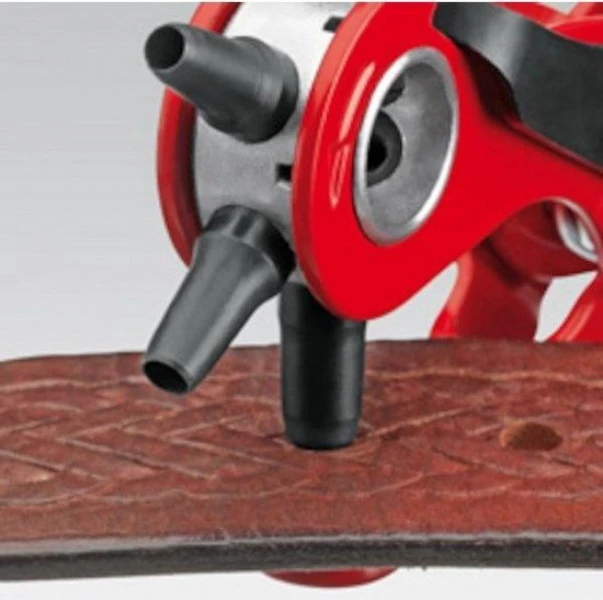 Revolverponstang, geperst en gevormd uit hoogwaardig plaatstaal. Voorzien van poederlaklaag voor een optimale roestbescherming. Met openingsveer en sluiting. Voor het gaten ponsen in leer, textiel en kunststof. Met zes verwisselbare holpijpen in de diameters 2,0/2,5/3,0/3,5/4,0/5,0 mm. .