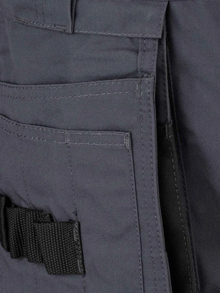 De stof is slijtvast (65% polyester, 35% katoen), heeft drievoudig gestikte naden en het gewicht van de broek is 270 gram /m2. De werkbroek is elastisch in de taille, heeft een hamerlus en grote riemlussen voor een gereedschapssriem, waarvan twee aan de achterkant met klittenband te openen zijn.