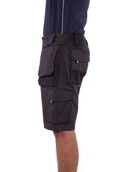Ook heeft de Job verschillende zakken, namelijk twee open en twee met klittenband afsluitbare heupzakken, twee klittenband kontzakken, een duimstokzak en twee afritsbare workerzakken met open zakken en pennenzakken- en houders.Job – Korte Werkbroek – ZomerDrievoudig gestikte nadenBeschikt over een hamerlus en duimstokzakAfritsbare workerzakken (open- en pennenzakken)