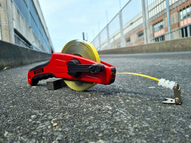 Met deze landmeter is het nauwkeurig opmeten van grote oppervlakken tot 30 meter geen enkele uitdaging meer. De meter zelf zit in een stevige, metalen behuizing die ervoor zorgt dat de meter zelf recht afloopt. De antislip greep is van uitstekende kwaliteit en ligt goed in de hand. De aanduidingen van de afstanden begint bij het einde van de fixatiehaak. Deze is uitklapbaar en fungeert dus eigenlijk ook als beveiliging. Tenslotte is het handvat ook erg schokvast, zodat je zelfs bij onverwachte bewegingen altijd de controle houdt.